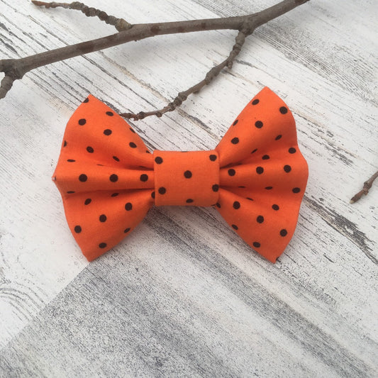 Orange with Black Polka Dots - Slip On Bow Tie